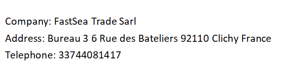 Our order process is conducted by our online reseller FastSea Trade Sarl. FastSea Trade Sarl is the Merchant of Record for all our orders. FastSea Trade Sarl provides all customer service inquiries and handles returns.